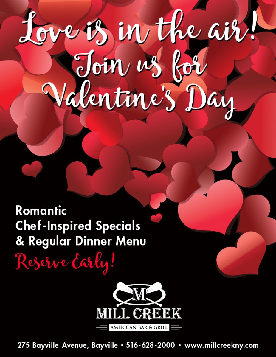 EventsValentine's DaySaturday February 14thJoin us on Valentine's Day for the perfect romantic evening!11:00 AM - 10:00 PM